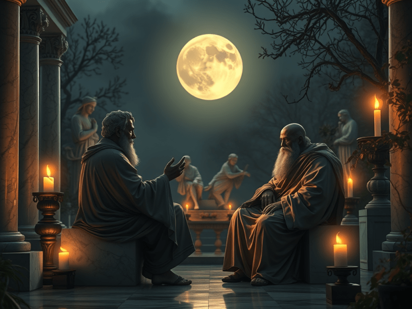 La noche se había vuelto más silenciosa. El primer intercambio entre Céfiro y el anfitrión no había cerrado nada: solo había abierto un territorio más hondo. Ambos permanecían sentados frente al mármol y las antorchas, conscientes de que lo dicho era apenas el umbral.